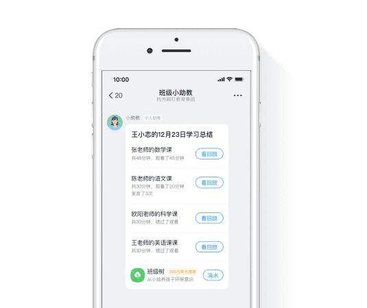 同时家长去上班了,不在孩子身边,也能收到孩子学习情况推送,让家长在单位安心复工。