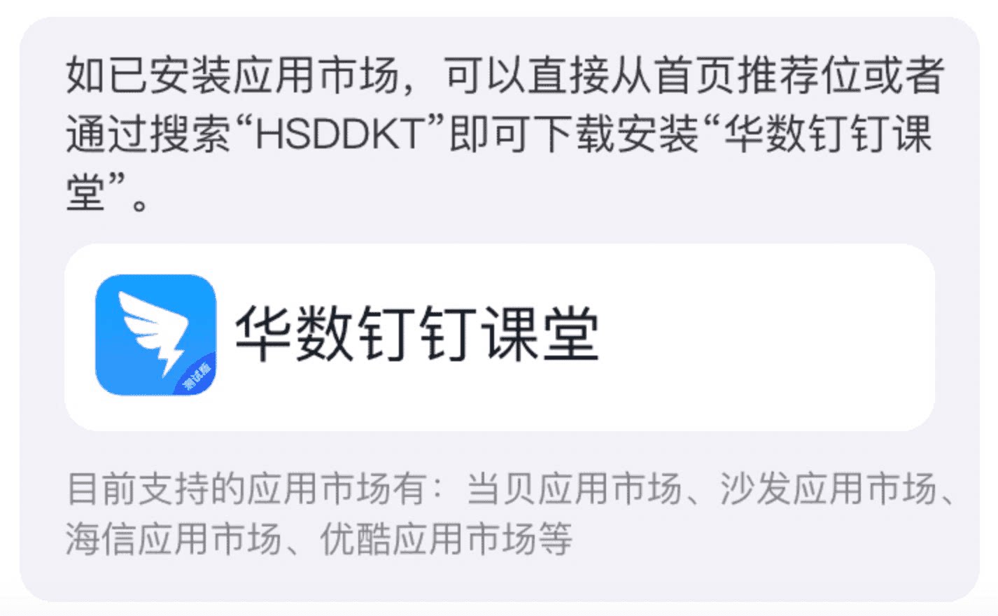 钉钉为了让学生在线上课有更好的体感,全新推出面向电视用户的客户端—华数钉钉课堂。支持各大电视端应用市场下载。